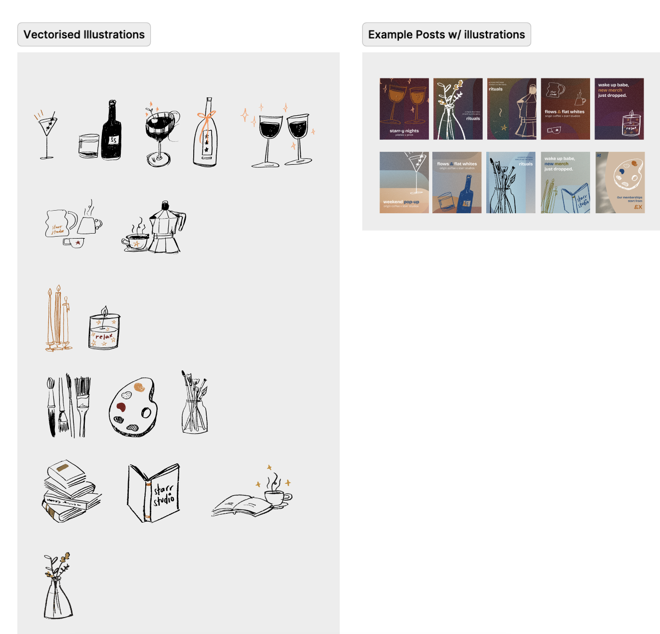 We also wanted to include some illustrations with a star mascot. Janine is an amazing artist, it was a pleasure to see her work come to life in the form of these illustrations. The result is playful, unpolished and true to the brand.